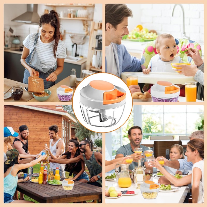 - 【Easy Use & Powerful】:The manual food processor is ideal for chopping onion, garlic, ginger, vegetables, fruit, nuts, herbs, meat, tomato, avocado and more for salsa, pesto, smoothie, guacamole, ground beef and more,It only needs pull the string, the blade will turn, and then you can get the chopped ingredients,saving you time and freeing your hands.