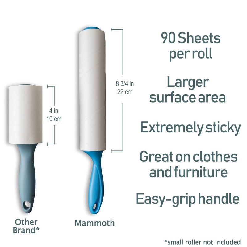 Mammoth Lint Roller-Extra Large Lint Roller, 2 Rollers and 2 Refills, 90 Sheets per Roll, Perfect for Pets (360 Extra Long Sheets Total)