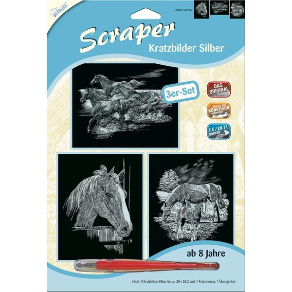 • The complete set includes 3 scratch pictures silver (each approx. 20 x 25.5 cm), 1 scratch knife and 1 exercise sheet, perfect for getting started with great enthusiasm