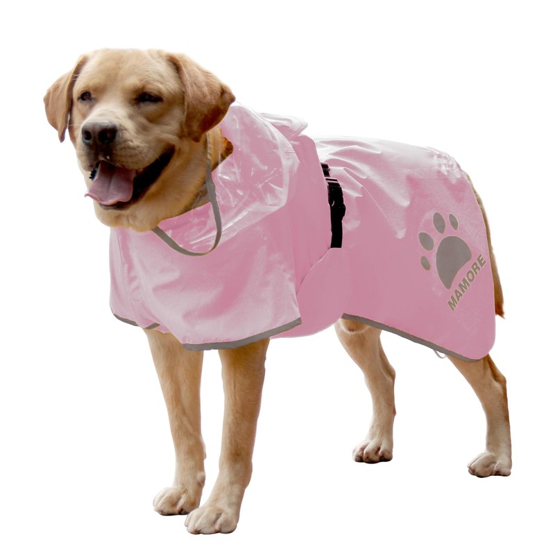MAMORE Dog Raincoat Hooded Poncho,Waterproof Dog Rain Coat with Reflective Strip, Adjustable Lightweight Dog Rain Jacket with Double Layer for Large Medium Small Dogs (Pink, Small)