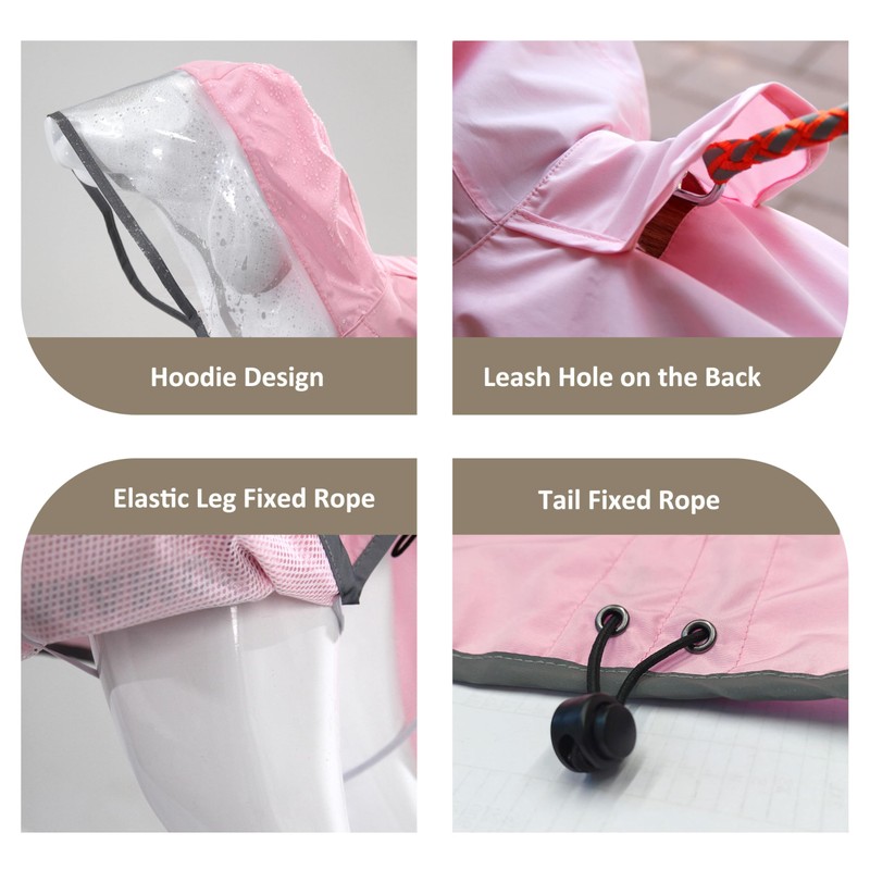 - LEASH HOLE: The raincoat uses the hole design on the back that convenient to attach the leash or harness, providing extra control for your pets.The elastic ropes fix the hem and tail, and will not be lifted in the wind day.