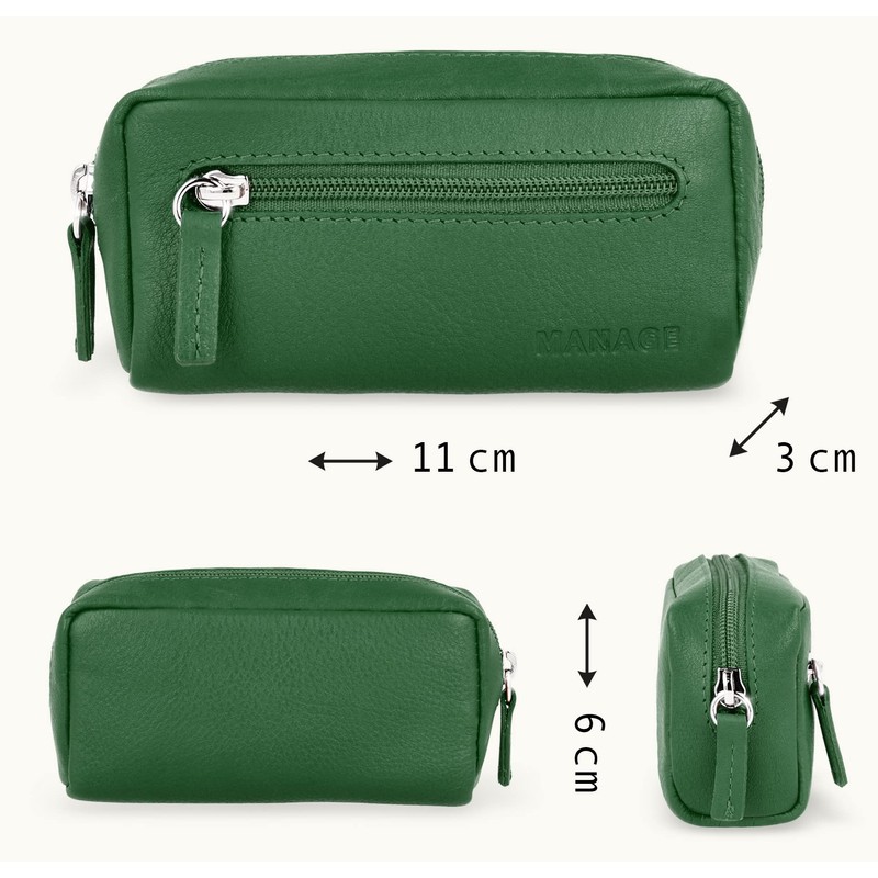 MANAGE XXL Leather Key Bag with Coin Compartment for Men and Women - Genuine Leather Key Case - Large Choice of Colours, Green