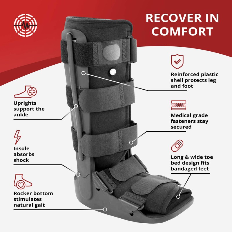 • Air Recovery Boots: The ManaEZ air cast offers mobility, protection, and support for daily activities while recovering from a variety of ankle and foot injuries, including sprain, broken foot, and stable fractures of the foot, ankle, and lower leg. To ensure you receive the correct-fitting orthopedic boot, reference the Mens and Womens size chart in the images.