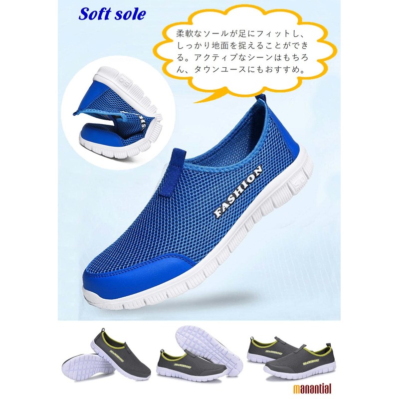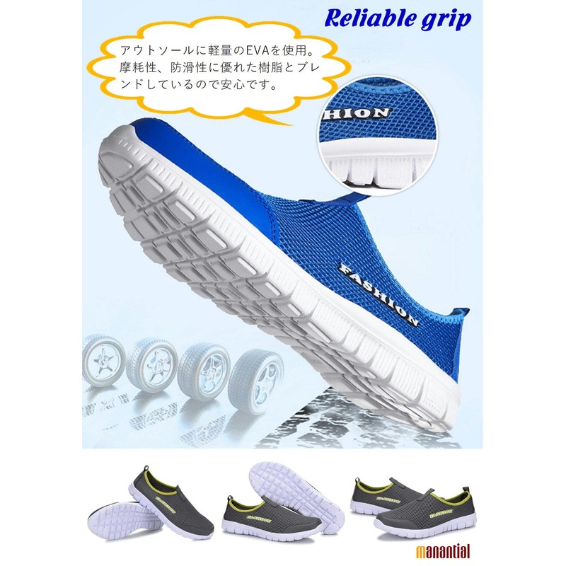Manantial Unisex Lightweight Mesh Shoes, Slip-On, Breathable, 3 Colors (Light Gray, Dark Gray, Blue) 9.1 - 10.6 inches (23.0 - 27.0 cm), gray (dark gray)