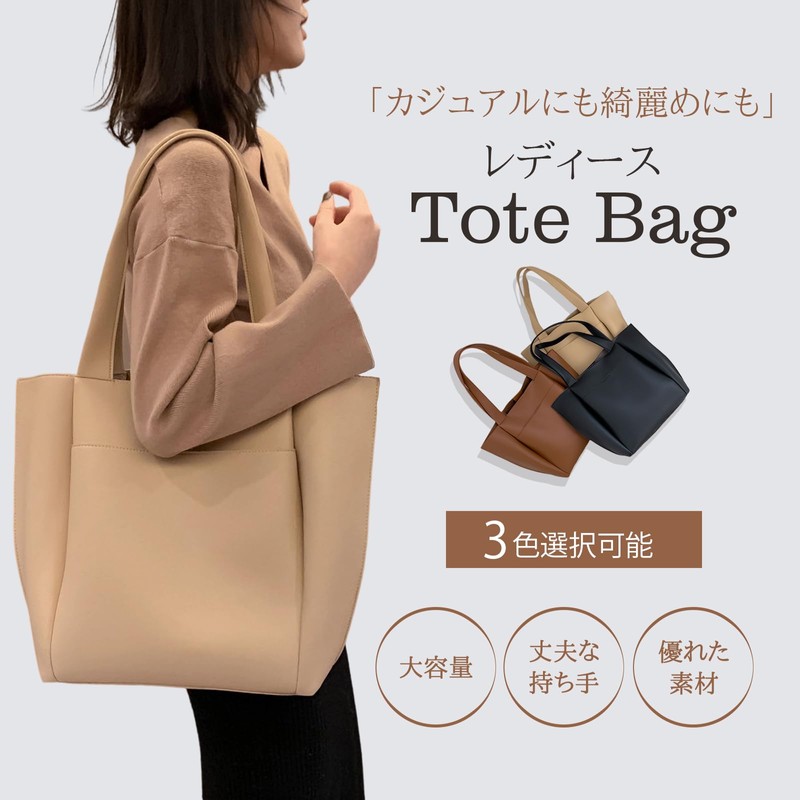 Manatsulife B1768 Tote Bag, Small, Lightweight, Large Capacity, A4, Commuting Bag, 2-Way Women's, Synthetic Leather, Horizontal, Business, Work, Khaki