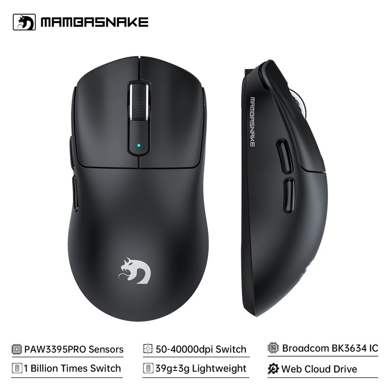 • Ultra-Lightweight Engineering: The MAMBASNAKE M3 achieves portability and control balance with its ultra-lightweight 39g body, featuring a compact structure and molded design for durability. The silicone-coated surface and ergonomic grooves conform to palm contours, reducing fatigue during extended use, while the "ice-coating" texture minimizes sweat buildup. The 61.7mm compact width fits small-to-medium hands perfectly.