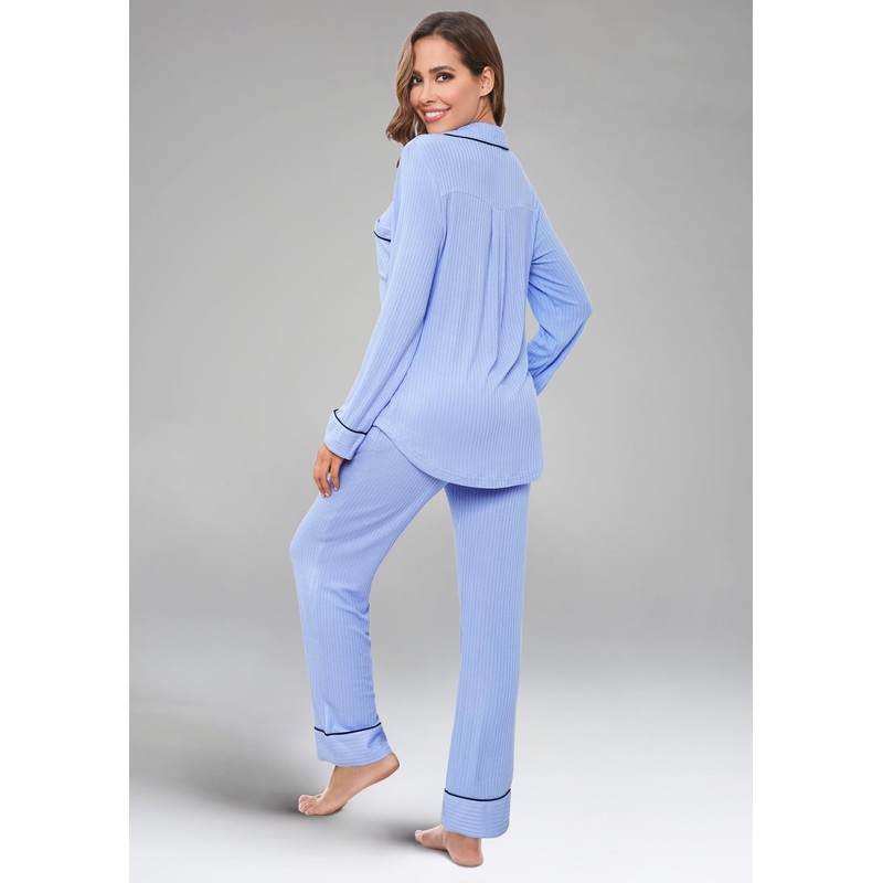 - ELEGANTand STYLISH: These pajama sets are perfect for women who value style as well as comfort.The V-Neck and button up top give these pajamas a sophisticated edge that'll make you feel elegant even while sleeping.This Nightwear set is also perfect for nursing moms