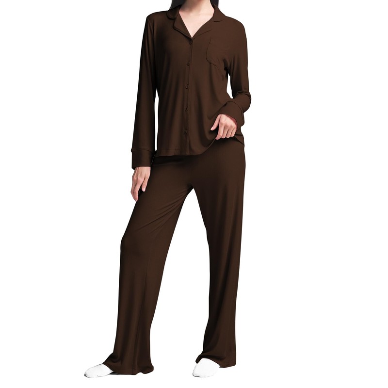 MANBEIYA Womens Pajama Sets 2 Piece Button Down Long Sleeve Sleepwear Pjs Loungewear Sets (Large,Brown)