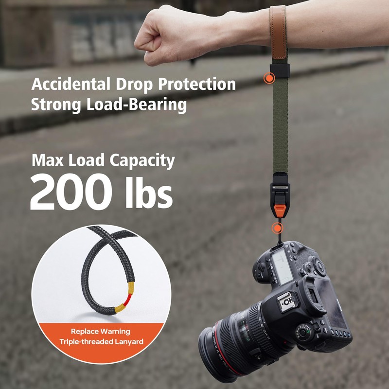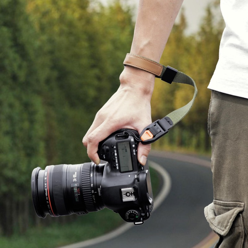 - ELEGANT AND STYLISH: The quick-release camera wrist strap is made from a comfortable, breathable nylon webbing and absorbs moisture. The genuine leather bracelet adds a luxurious look and elegance. Ideally suited to DSLRs, most mirrorless cameras, and SLR digital cameras