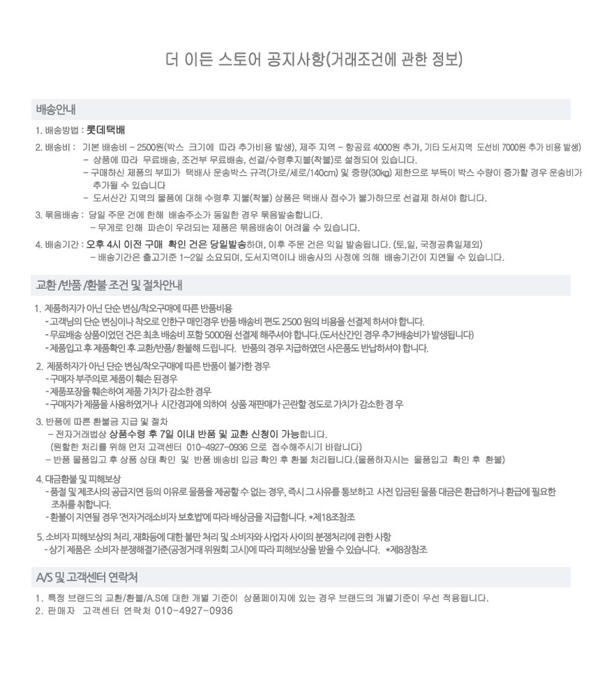 - A/S manager and phone number or consumer consultation phone number: 010-4927-0936