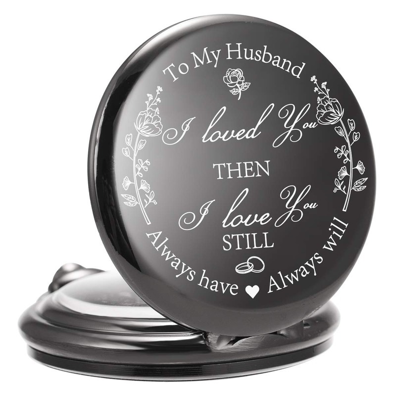 - ✎ ENGRAVED – each of our mens pocket watches are laser engraved with "TO MY HUSBAND, I love you then, I love you still, always have, always will" they are an extra special keepsake to treasure forever. A perfect anniversary present for him