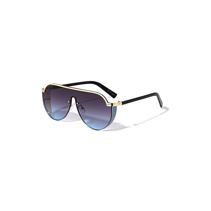 Manchester Flat Top Glitter Shield Lens Aviator Sunglasses (Blue)