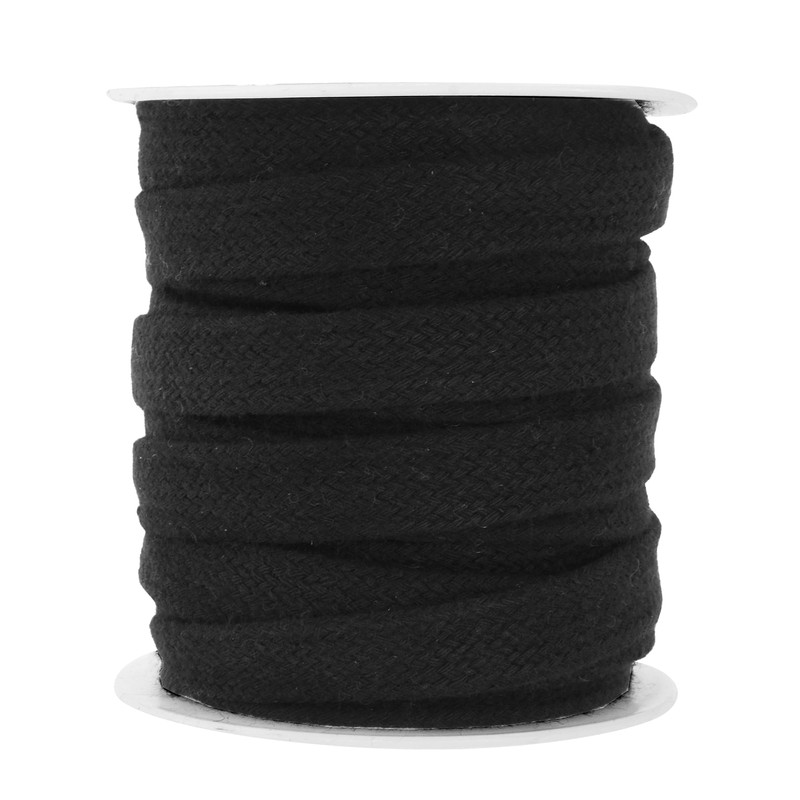 - Bulk Cord Sewing Drawstring Roll: The continuous black flat cotton drawstring replacement with consistent width is measured 3/4 inch or 19mm wide and 10 yards long.