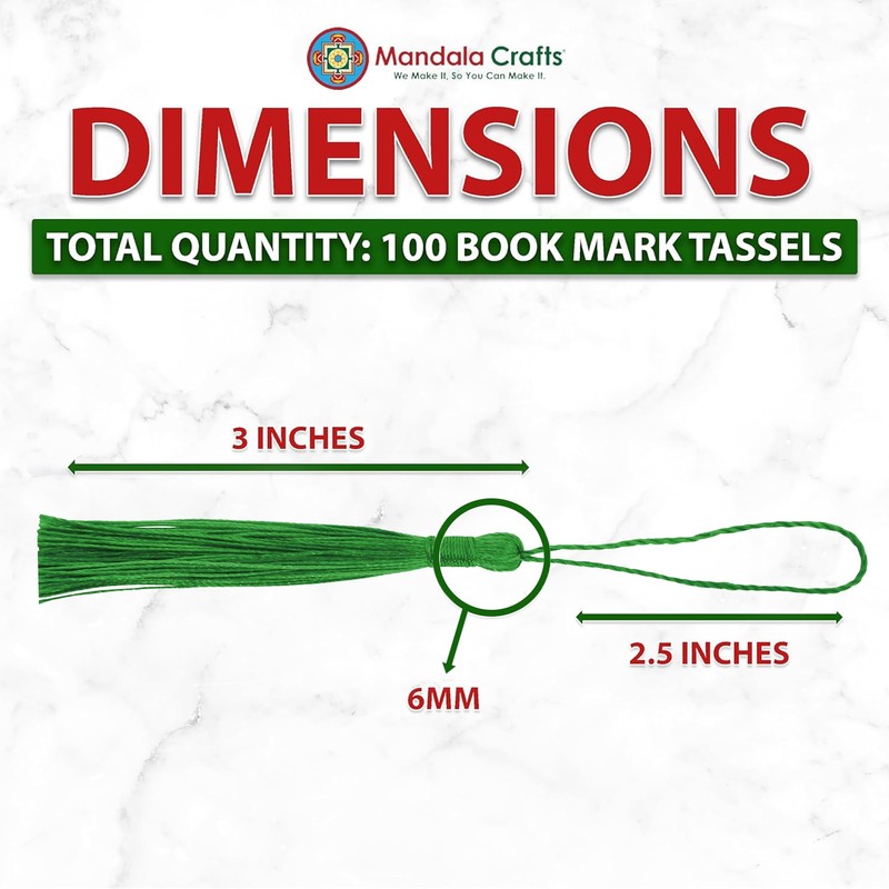 - DIY Tassel Charms for Scrapbooking & Jewelry Making Tassels: The non irritating mini forest green tassels serve as sturdy floss bookmark tassels for bookmark making, cards, & programs, jewelry tassels for necklaces, bracelets, or earrings, and mala tassels.