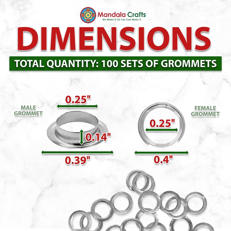 Mandala Crafts Grommet Eyelet Kit with Setting Tools for Leather, Fabric, Boots, Tarp Repair, Sewing Silver Tone 100 Sets 2/5 Inch Inner Diameter