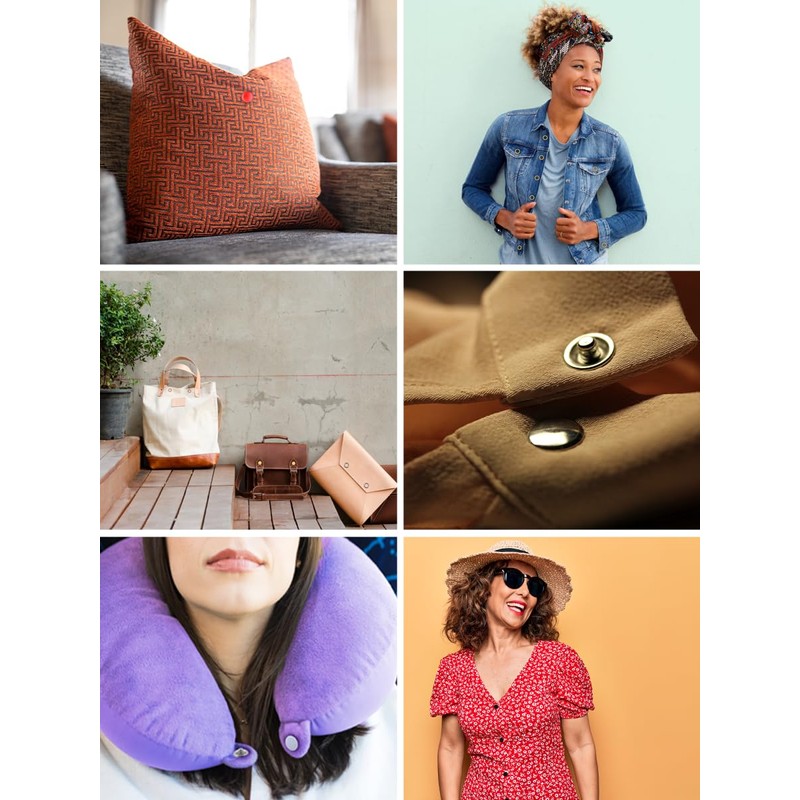 - Click Button Closure & Snap Tool Kit for Cotton, Leather, Webbing, Vinyl or Denim: The snap buttons for sewing, crochet & knitting make great leather snaps & brass snap buttons for clothes and decorative snaps for pouches, bags, duvet covers, and wallets.