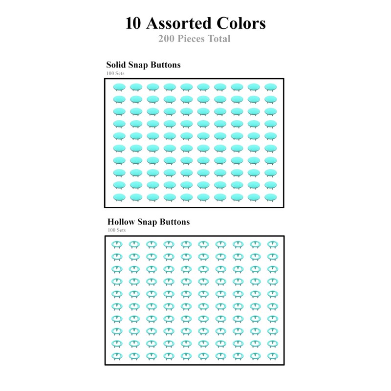 - Bulk Stud Fabric Snaps and Fasteners Kit: With mint buttons snap for sewing, the 9.74mm / 0.4”no sew snaps set has 100 snap grommets sets, total 200 DIY size 14 craft snaps.