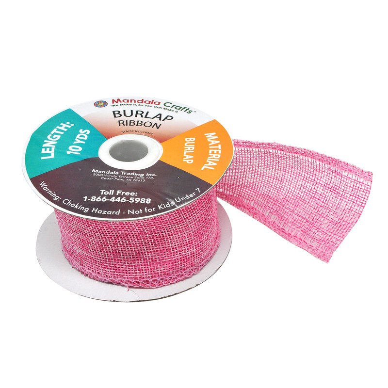 Mandala Crafts Pink Burlap Ribbon 2 Inches Wide Jute Ribbons for Crafts - 20 Yds Roll Rustic Burlap Wrap Trim Ribbons for Wreaths Bows Wedding Party Decoration