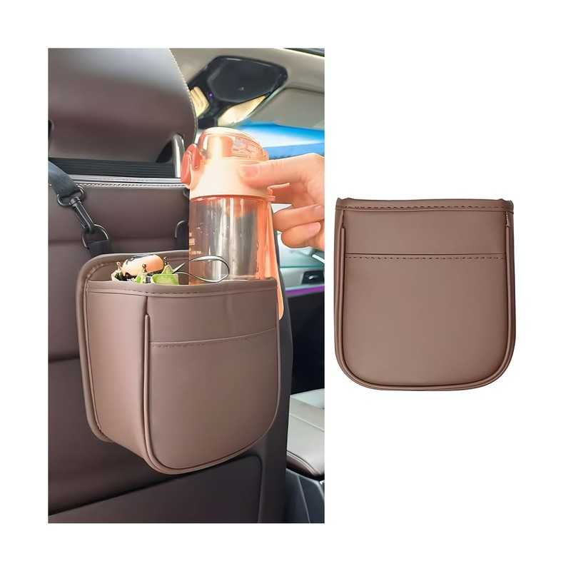 Mandark Car Seat Back Organizer, Vehicle Backseat Hanging Bag with Storage Pocket, Multifunctional Automotive Interior Headrest Trash Can Box Accessories, Universal for SUV, Sedan, Truck (Brown)