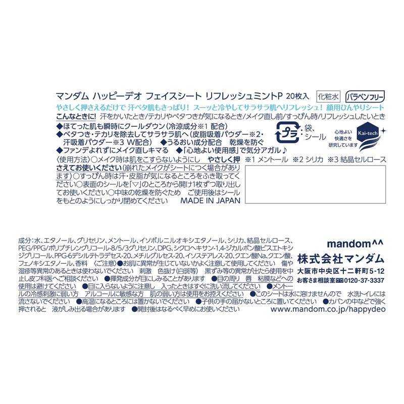 MANDOM Happy Deo Face Sheet, Refresh Mint Set, 20 Sheets (3 x 3)