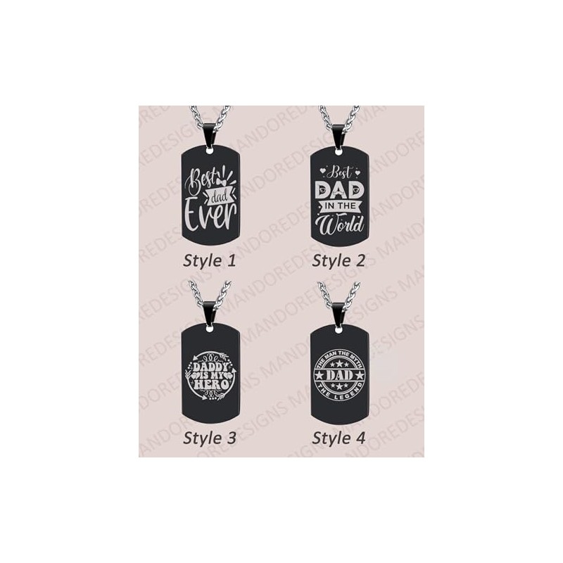 Mandore Designs Square Engraved Dad Necklace, Father's Day Gift for Daddy and Men's (Style 1 (Best Dad Ever), Silver)