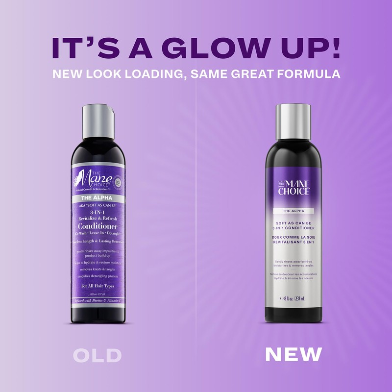The Mane Choice The Alpha Soft As Can Be Revitalize & Refresh 3-in-1 Conditioner: Co-Wash, Leave In, Detangle: The Mane Choice The Alpha Soft As Can Be Revitalize & Refresh 3-in-1 Conditioner is the ultimate go-to hair care product for your curls. This is undeniably designed to make your wash days a breeze. Cleansing and conditioning would never have been more fun than with this leave-in conditioner that also helps to remove build-up. Say goodbye to annoying knots and tangles with the unique detangling components in this cleansing conditioner. The 3-in-1 conditioner gently cleanses without stripping hair and scalp of its natural oils and nourishes, smoothens, and softens your curls helping them stay healthy and vibrant. The infusion of Biotin and Vitamin E helps to support healthy looking hair and also ensures deep conditioning. No more dry feeling only soft, shiny curls that will make heads turn. As a Co-Wash: Wet hair thoroughly with warm water, squeeze a generous amount into the palm of your hand, and massage through hair and scalp for 3-5 minutes. Rinse out as much or as little as desired with cool water. Repeat, if necessary. As a Leave-In Conditioner: Apply generously to clean wet hair. Distribute evenly throughout the hair from roots to ends and start the detangling process with fingers by carefully separating the hair into sections. Using a wide-toothed comb, gently comb hair from ends to roots, section by section, using short strokes. Rinse out with cool water or leave in as much as desired. The Alpha Soft As Can Be Revitalize & Refresh 3-in-1 Conditioner is the result of extensive research and commitment to providing the best care for your hair. Our brand is dedicated to delivering quality and effective hair care solutions. Invest in The Mane Choice and embrace the beauty that comes with complete hair care and nourishment.