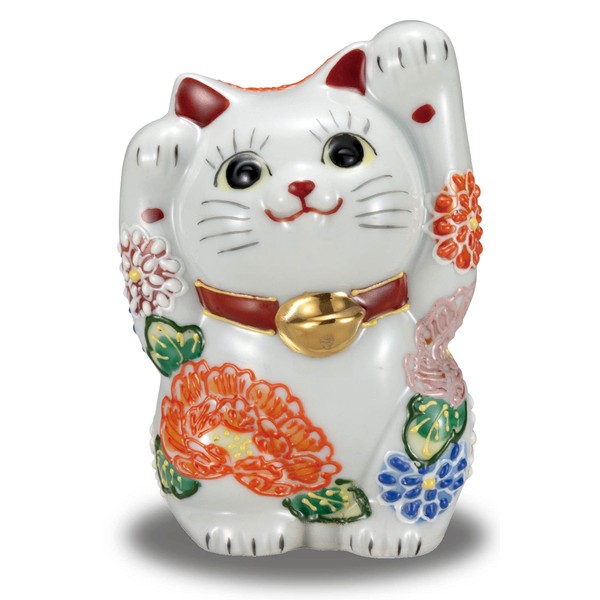Maneki Neko Figurine, Pottery, Kutaniyaki, Double Handed, Maneki Neko, Flower Making, Feng Shui, Good Luck, Interior, Japanese Style, Small Items