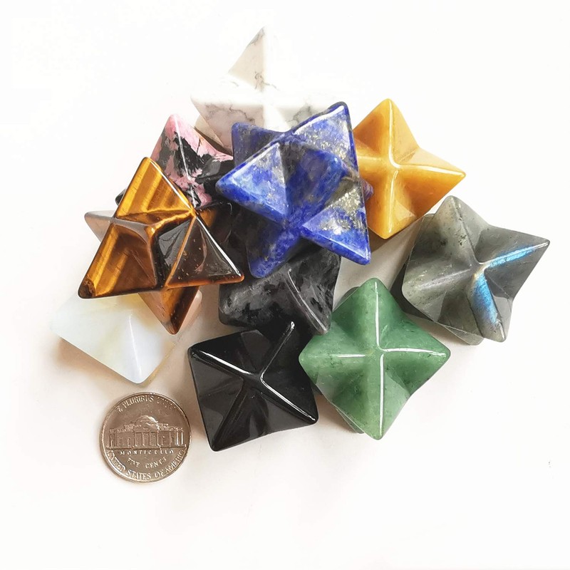 1.Dimension for Hexagonal Star Size(The following measurements are taken for a single statue without packaging):Width about 35mm, height about 45mm,thick about 25mm, Weight about 20-30 gram;2.Natural stone and crystal, because they are hand-carved, will differ in size, Stone grain,shape and color(Pictures for reference only). After all, each stone is unique, and every worry stone you receive is unique;and stone may have gragn spot scratches;3.Pakcage Content:1x Hexagonal Star;4.Put it in your living room or office. It will help you attract wealth and prosperity, success, and all good things.A Great Decoration for Christmas, Wonderful for grids, meditation,chakra work,reiki healing,home decors;5.Merkaba was first activated through the ancient methods of breathing and contemplation taught in Egyptian esoteric schools. Is a counter-rotating field of light generated from the spinning of specific geometric forms that simultaneously affects one's spirit and body. It is a vehicle that can aid mind, body and spirit to access and experience other planes of reality or potentials of life. It helps you to be receptive to higher guidance;6.Merkaba is a crystalline energy field composed of sacred geometry that can adjust your consciousness, body and heart.Amplifies, focuses, stores, transforms, energizes. Perfect for focusing affirmations and prayers. Stimulates psychic perception.Merkaba enables us to expand our experience of consciousness, connect with the increased consciousness potential, and restore our memory of infinite possibilities. The correct Merkaba meditation integrates our female (intuition, receptivity) and male (active, dynamic) nature in the heart and spirit.