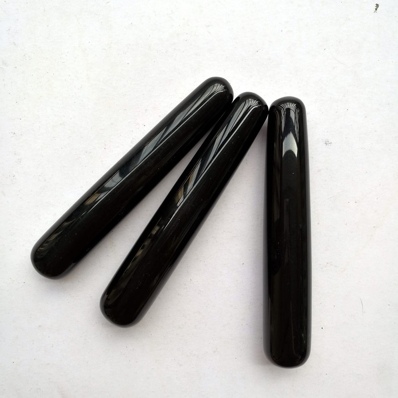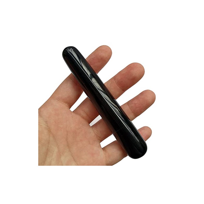 Manekieko Natural Black Obsidian Crystal Jade Gua Sha Handmade SPA Massage Wand for Acupuncture Therapy Stick Point Treatment,Scraping Facial Massage Tools