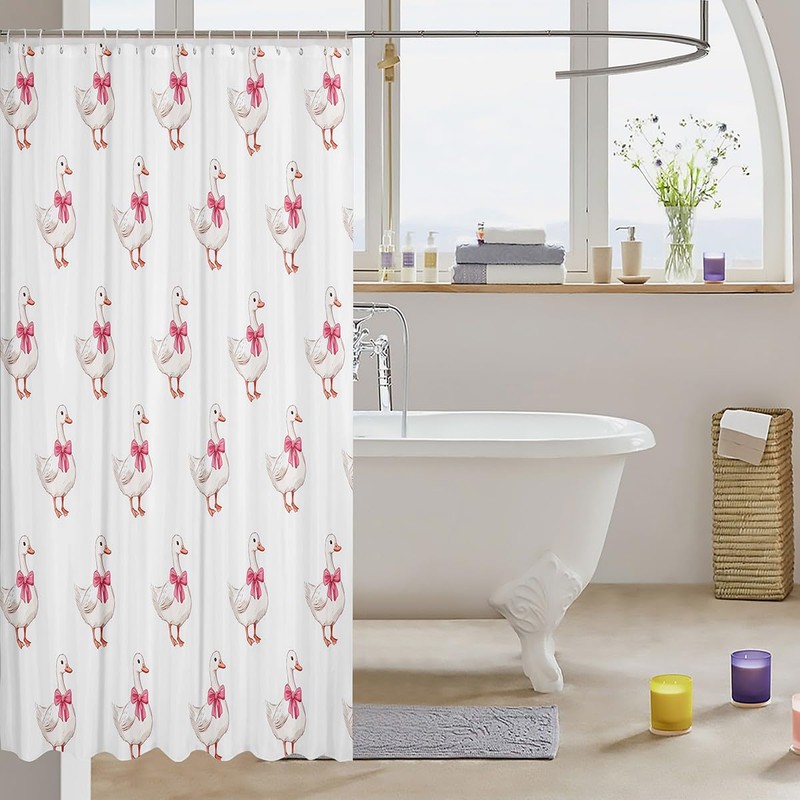 Manfei Cute Duck Shower Curtains for Bathtubs 72" W x 72" LPink White Bowknot Animal Bath Curtain for Kids Boys,Farm Duck Lovely Pet Waterproof Bathroom Curtain with 12 Hooks