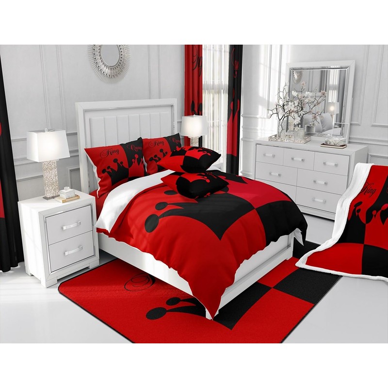 Manfei Queen and King Throw Blanket Black Red Patchwork Blanket for Couch Sofa, Black Red Crown Bed Blanket for Kids Boy Girls Room Decor, Soft and Breathable Fleece Blanket(30 x 40 Inches)