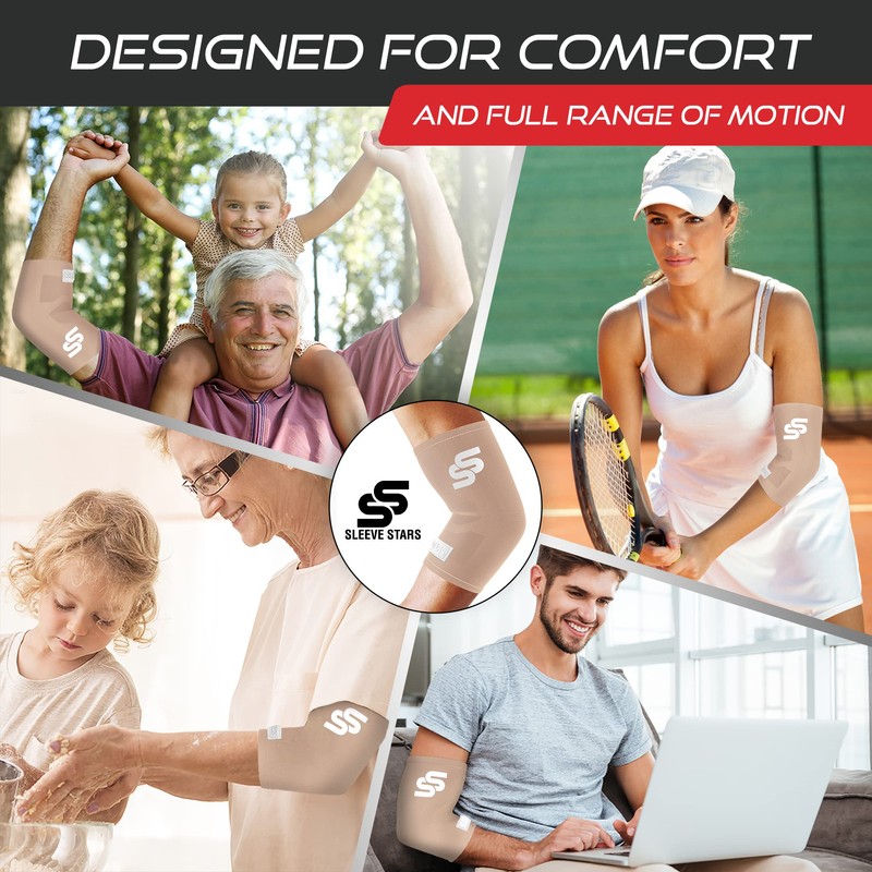 - ✅ Proporciona protección y alivio: la codera de tenis Sleeve Stars para hombres y mujeres proporciona una gran compresión que te ayudará a recuperarte más rápido y te permite volver a hacer lo que te gusta