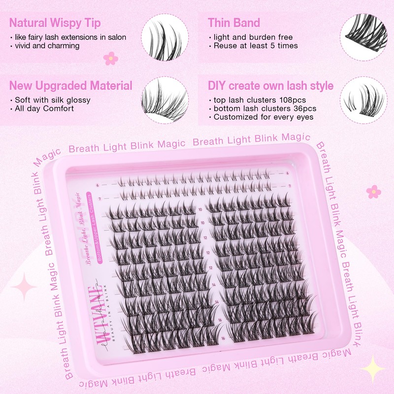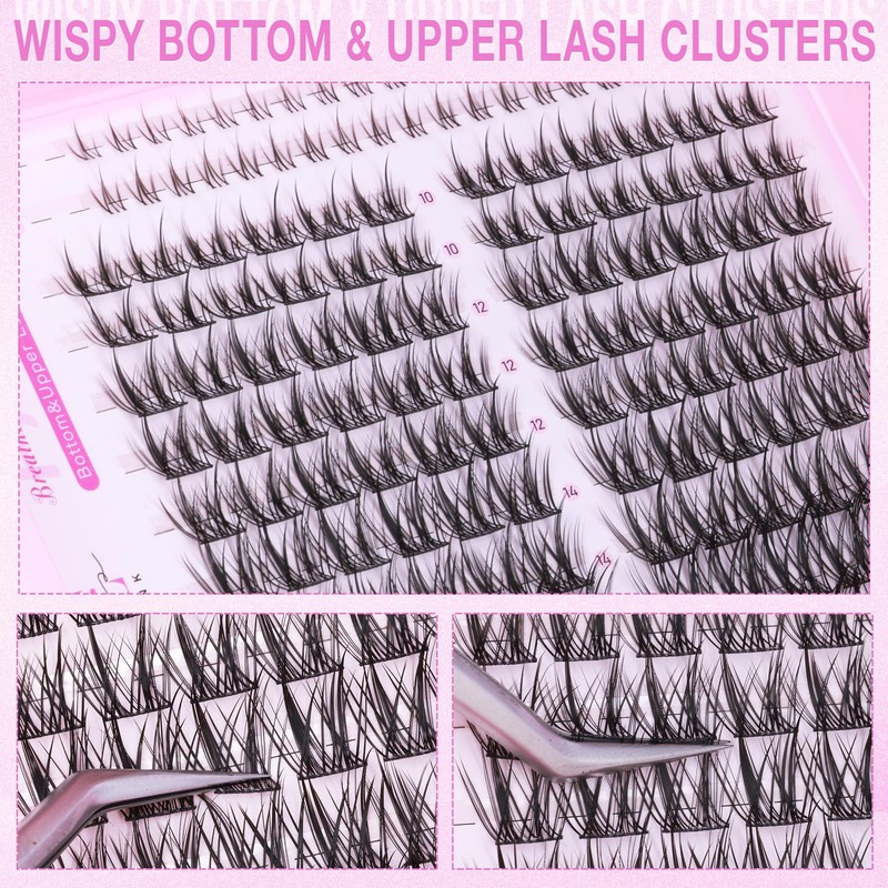 • Beginner Friendly: As a beginner, take control of your beauty with our natural cluster eyelash extensions; 140pcs lash clusters ranging from 8 mm to 16 mm are easy to apply, so even if you're new to lash extensions, you can achieve a glamorous look at home
