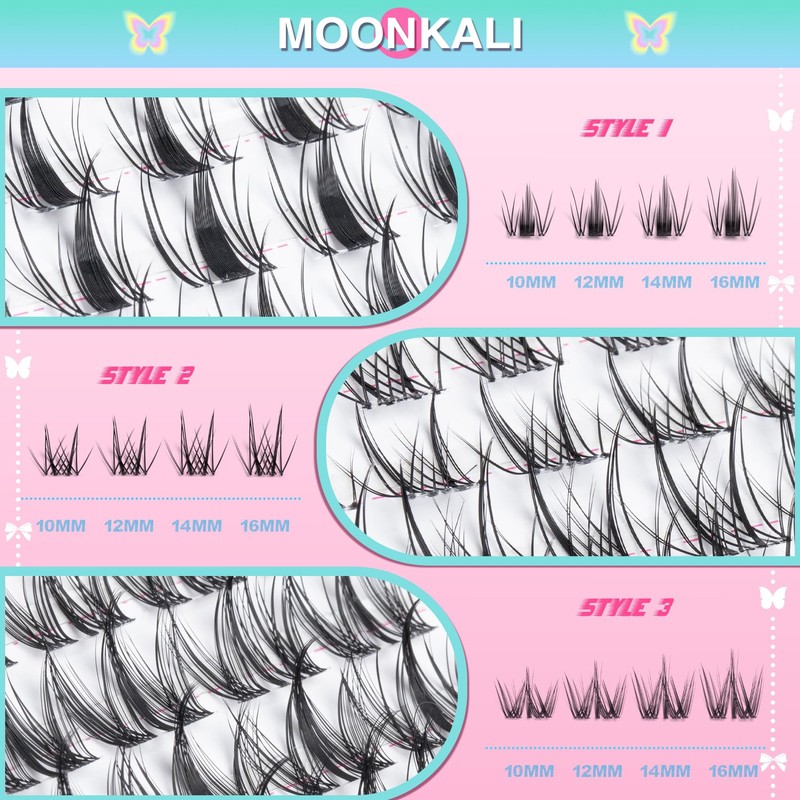 - Efficient, durable and reusable individual lashes: MOONKALI lash clusters with spikes are user-friendly for both beginners and makeup enthusiasts. You can DIY your desired lash styles at home. MOONKALI d curl spiky lash clusters are easy to apply and remove. With proper care, they can be used multiple times