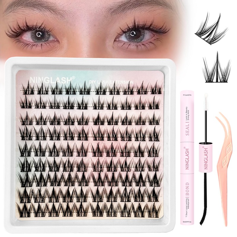 Manga Lashes Clusters Kit Eyelash Clusters Wispy NINGLAH Fairy Cluster Eyelash 100Pcs Spiky C Curl Individual Lashes Natural Look Anime DIY Eyelash Extension Kit With Lash Bond And Seal Lash Tweezer