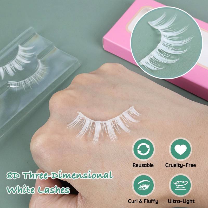 Manga Lashes Natural Wet Look Wispy Spiky Lashes 10 Pairs Anime Eyelashes Wispy Natural Lashes Extension Strip Thai Fake Eye Lashes Handmade Thick Soft Fake Eyelashes (White 2 Pairs)