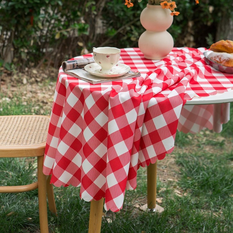 The checkered printing design and Scalloped edge style make this gingham table cloth for outdoor simple yet stylish and exquisite.