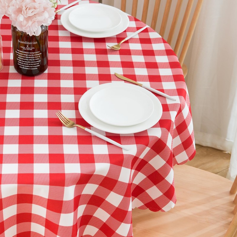 - 【Premium Checkered Tablecloth】The round plaid gingham table cloth is made of 100% polyester fabric that printed checkered design and cropped with scalloped edge, which is popular among users for its simplicity, fashion and generosity.