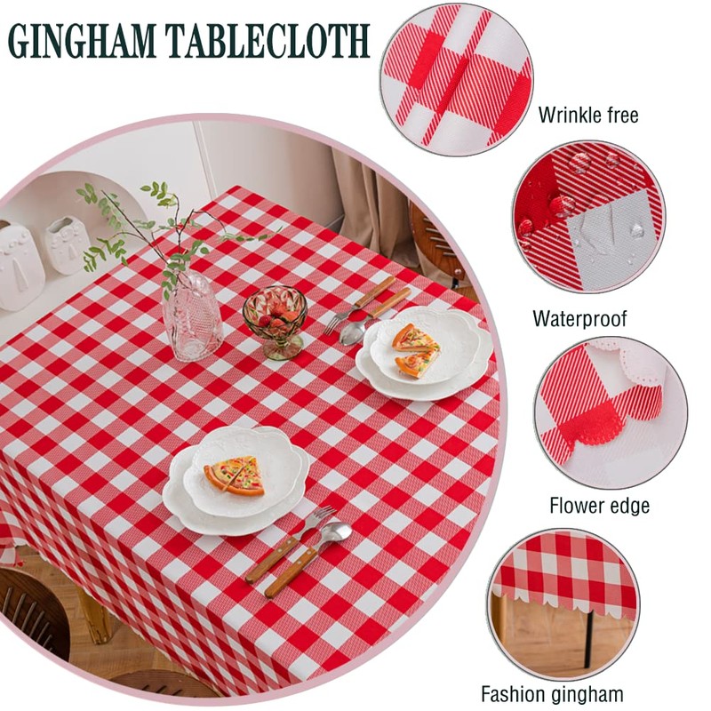 - 【Premium Checkered Tablecloth】The gingham table cloth is made of 100% polyester fabric that printed checkered design and cropped with scalloped edge, which is popular among users for its simplicity, fashion and generosity.