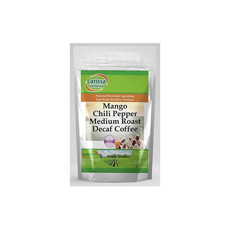 - Our Mango Chili Pepper Medium Roast Decaf coffee is a terrific all-natural flavored decaffeinated Medium Roast coffee with Mango Slices, Chili Flakes and Cloves that you can enjoy again and again! You will really enjoy the special balanced Mango Chili Pepper coffee aroma and taste without the caffeine! - Ingredients: Decaffeinated Medium Roast (whole coffee beans), Mango Slices, Chili Flakes, Cloves and Natural Mango Chili Pepper Flavor.