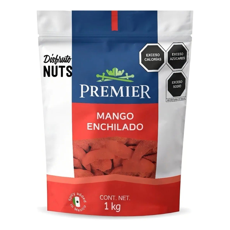 Mango Enchilado Deshidratado Premier, distribuido por DISFRUTO NUTS. Contenido Neto 1000gr.