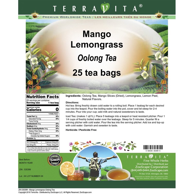 - Our Mango Lemongrass Oolong Tea is a luxurious flavored Oolong tea with Mango Slices, Lemongrass and Lemon Peel that you can enjoy hot or cold! The Mango Lemongrass flavor and aroma is wonderful! - Ingredients: Oolong tea, Mango Slices, Lemongrass, Lemon Peel and Natural Mango Lemongrass Flavor.
