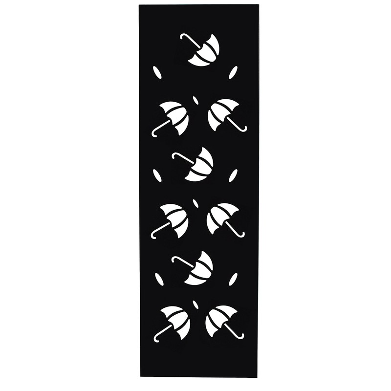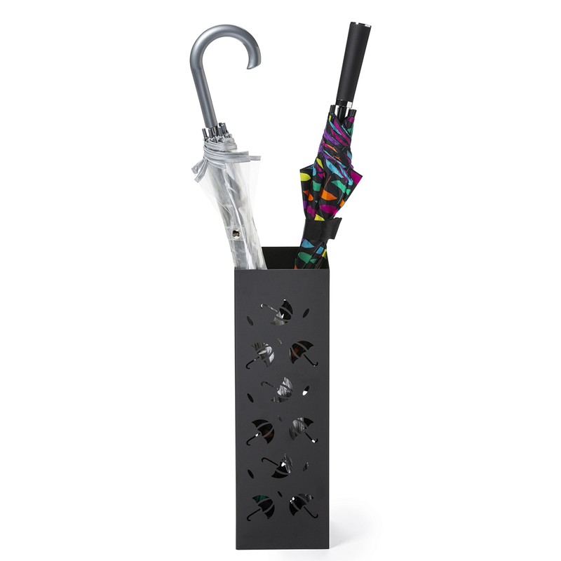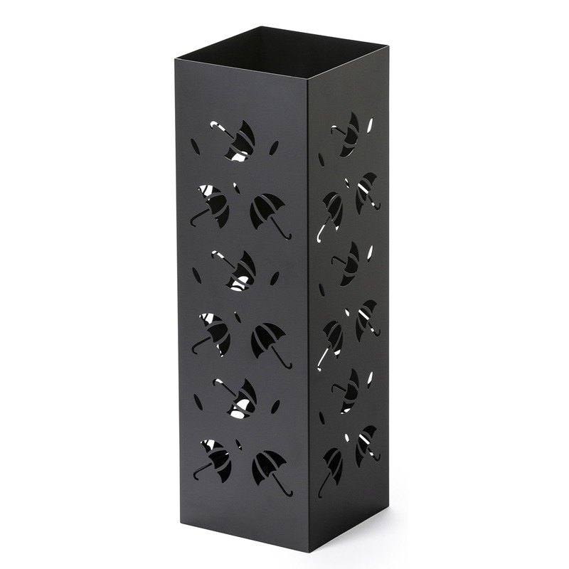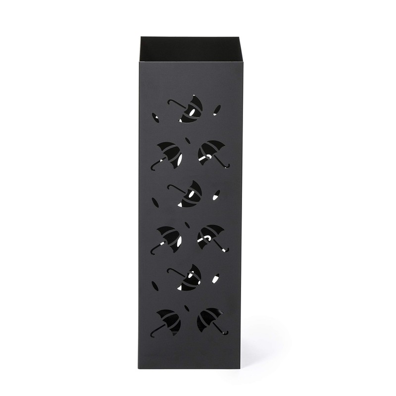 Mango Steam Square Umbrella Holder (Brollies Black). Shield yourself from showers by keeping the proper gear nearby in the foyer with this umbrella stand. Crafted from steel, this freestanding piece strikes a boxy silhouette measuring 19.5'' H x 6.5'' W x 6.5'' D overall to hold a few of your favorites. A black finish gives it the versatility to blend with any existing entryway ensemble, while cutout umbrella motifs along all sides offer a whimsical touch.