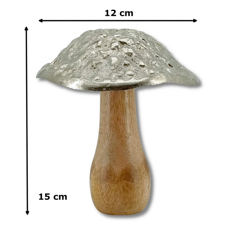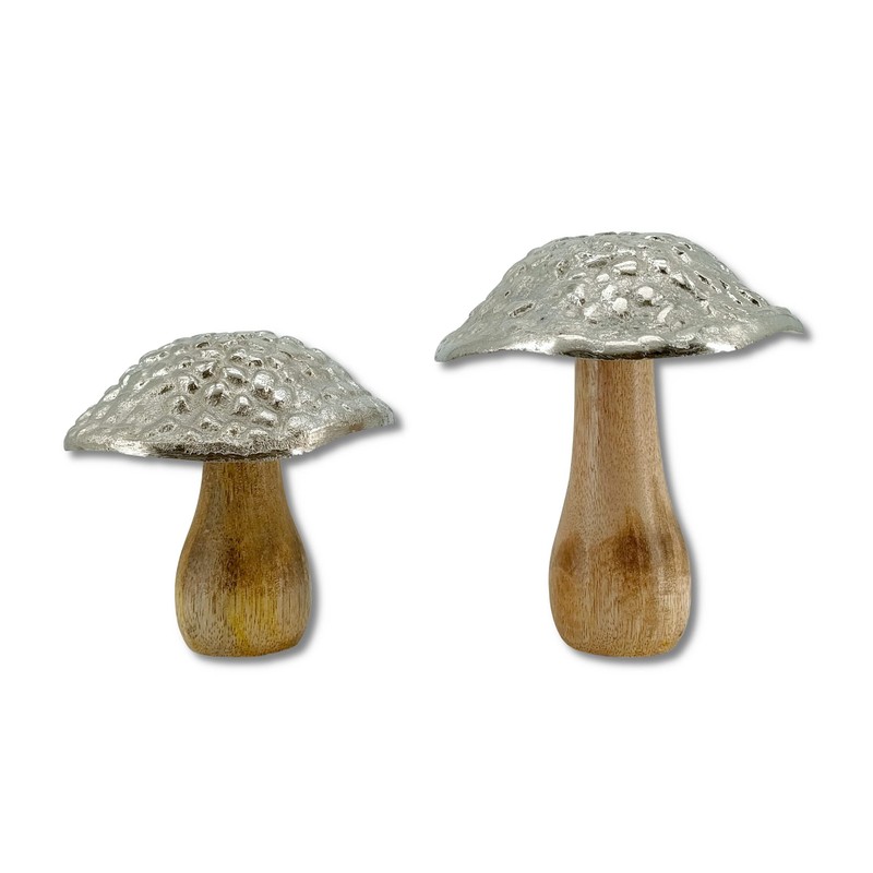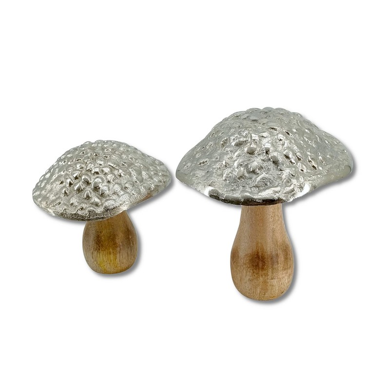 Mango Wood and Metal Figurine Mushroom Brown Silver Set of 2 - 11 and 15 cm Decorative Figure Forest Decoration Table Decoration