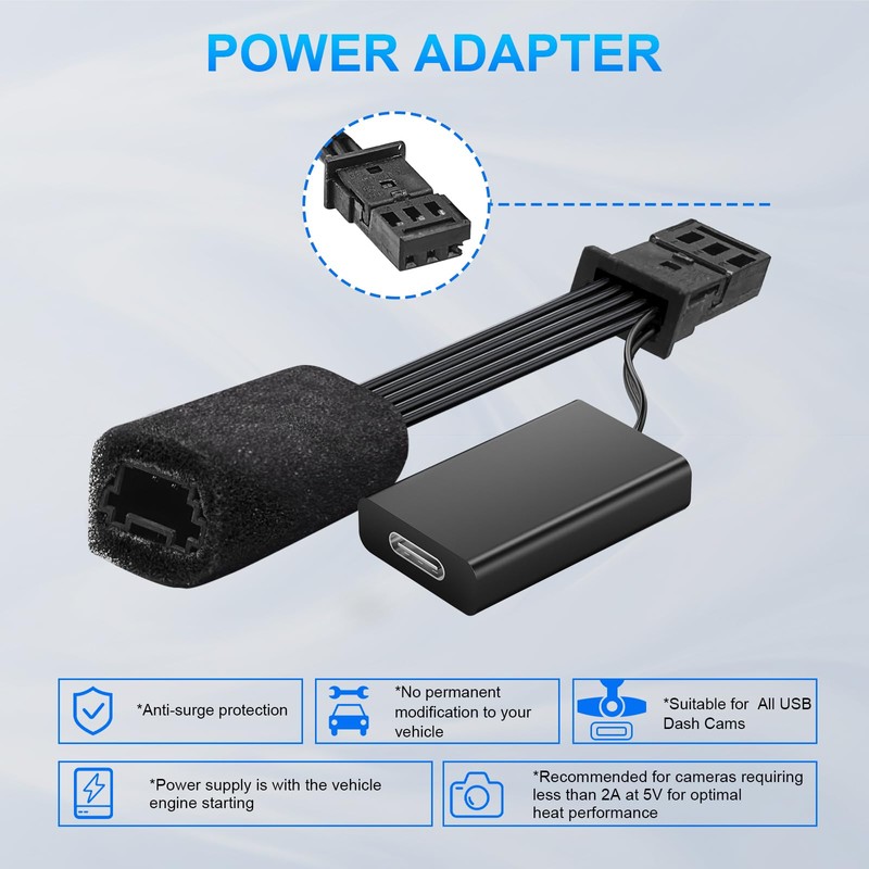 - 【COMPATIBILITY LIMITATIONS】Please note that this adapter is not compatible with devices requiring 12V or those powered by a barrel jack or RJ11 connector. This adapter is not compatible with digital mirrors or mirrors with backup cameras.The parking monitoring function is not supported.