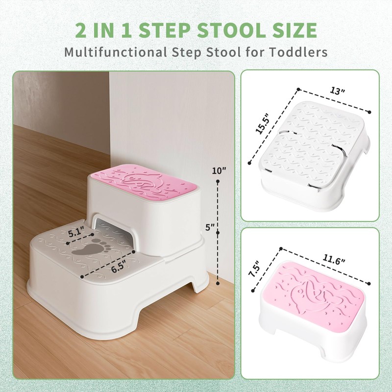 - Two-in-One Design: Our two-in-one design potty train step stool is easy to assemble in just one step and can be adjusted to fit your needs. This versatility not only extends the life of the kids step stool for closet, but also provides greater convenience, ensuring you get the most value out of our versatile step ladder toddler.