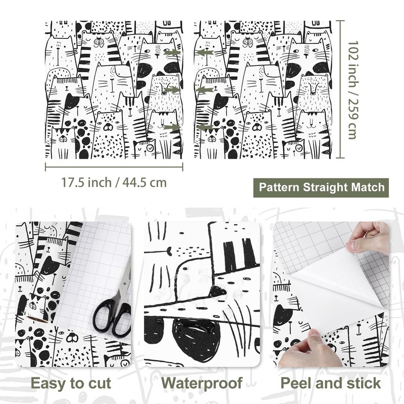 - Cat Wallpaper【FEATURES】Crafted from premium quality material, our black and white cat wallpaper boasts waterproof, oil-proof, easy to clean, and difficult to tear, making maintenance a breeze. Removable wallpaper provides excellent protection for your walls and countertops and ensures an upscale look, making animal wallpaper a durable and long-lasting choice for your home décor