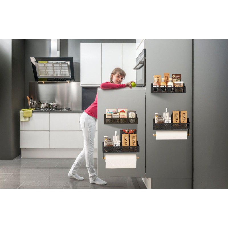 - [Space Saving] This Refrigerator Magnetic Shelf Can Accommodate Various Sizes Of Spice Bottles And Jars. Maximizing Storage Space While Reducing Clutter. The Minimalist Design Complements Any Kitchen Décor. Keeping Everything You Need Within Reach.