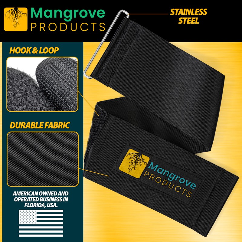 Mangrove Products Hook and Loop Cinch Strap for Transom Saver, Heavy Duty 4 inch Nylon with Stainless Buckle for Single-RAM Transom Savers for Outboard Motor, Boat Accessories Strap