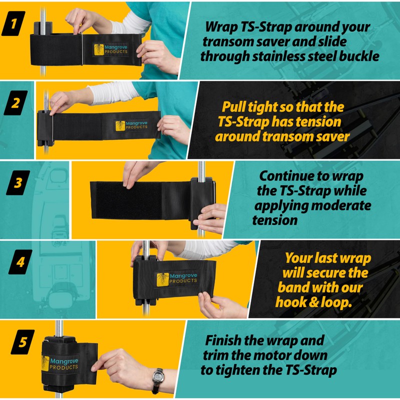 - ✅ SINGLE-RAM COMPATIBLE: Our cinch strap is compatible with all Single-RAM rubber transom savers including our TS-Block by Mangrove Products. This universal fitment will now unlock the ability to use on smaller outboards that one did not fit within the fitment guide. When before the smaller diameter piston will not fit properly to the internal grooves.